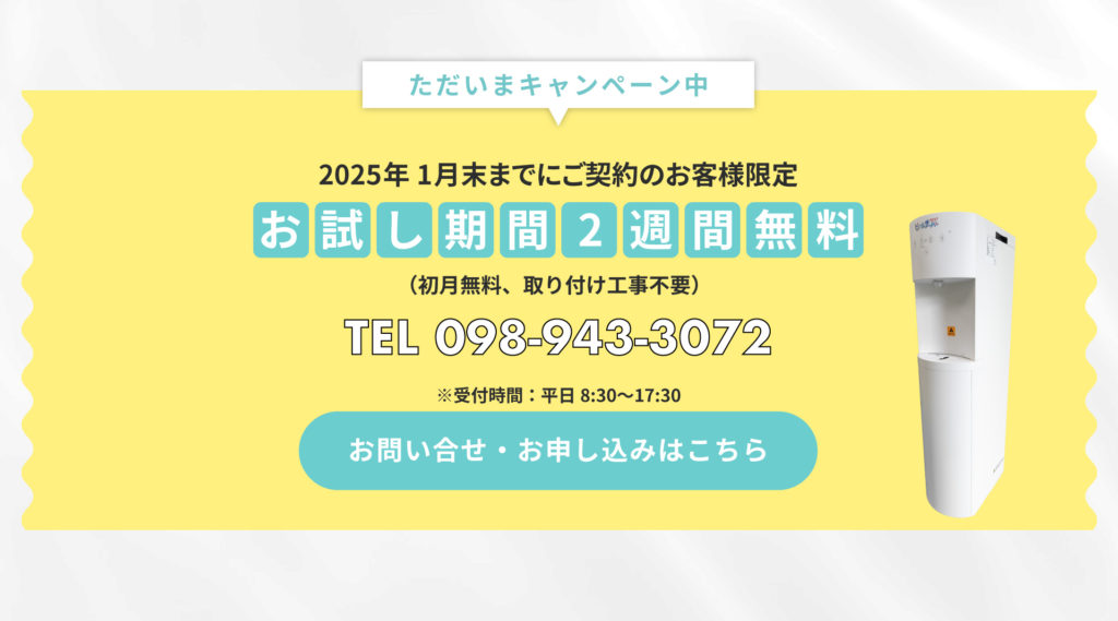 私たちは、沖縄の水質特有の課題を解決し、お子様からご年配の方まで安心してお飲みいただける安全で美味しい水をご提供しながら、これからも地域の皆様に寄り添い、健康で快適な暮らしをサポートできるよう努めてまいります。